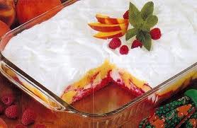 4) In a bowl whisk milk and pudding mix 2 min or until slightly thickened. Spread over peaches.